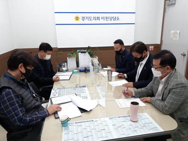 [한국Q뉴스] 경기도의회 성수석 의원, 김인영 의원, 허원 의원은 27일 경기도의회 이천상담소에서 이천시청 예산팀과 2021년 3차 경기도특별조정교부금 신청 사업에 대해 논의했다.