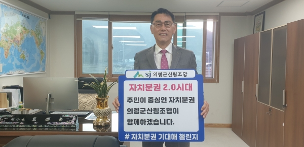 [피디언] 장원영 의령군산림조합장은 지난달 29일 자치분권 2.0시대를 맞이해 ‘자치분권 기대해 챌린지’릴레이에 동참했다.