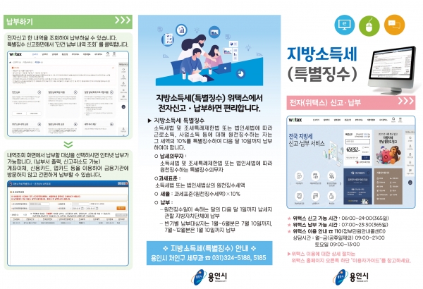 [피디언] 용인시 처인구는 2일 지방소득세 특별징수분을 납부하는 개인이나 법인을 대상으로 위택스를 활용한 전자신고·납부 방법 안내했다고 밝혔다.
