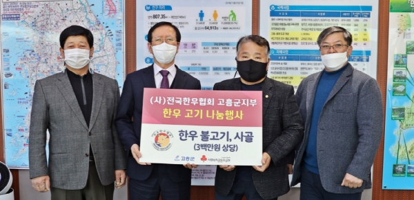 [피디언] 고흥군은 3일 전국한우협회 고흥군지부에서 한우 불고기와 사골을 기탁했다고 밝혔다.