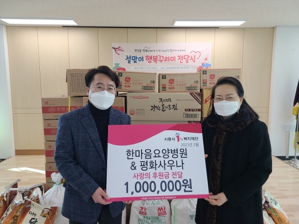 [피디언] 한마음요양병원&평화사우나가 2월 3일 1%복지재단을 통해 연성동 지역사회보장협의체로 후원금 100만원을 전달했다.