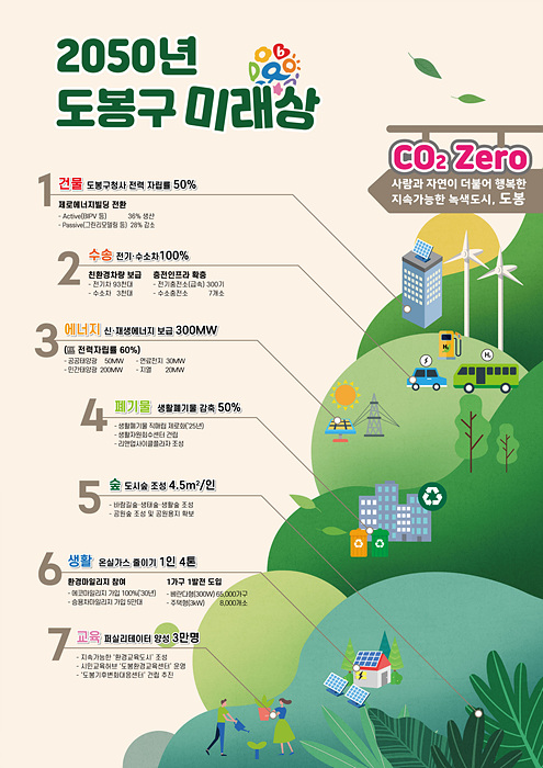 ‘온실가스 감축 T/F’를 가동하고 2020년 12월 전국 최초로 ‘2050년 탄소중립 실현’을 목표로 한 ‘도봉구 기후변화 대응에 관한 조례’를 제정한 도봉구가 기초자치단체로부터의 탄소중립 실현에 앞장서는 것이다.
