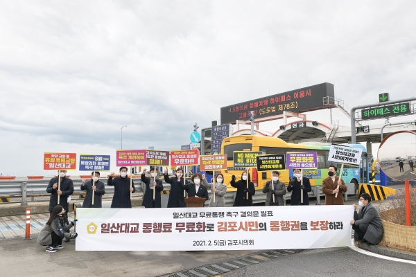 김포시의회는 5일 제207회 임시회 제2차 본회의에서 ‘일산대교 무료통행 촉구 결의안’을 채택했다.