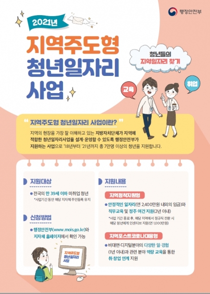 2021년 지역주도형 청년일자리사업의 일환으로 추진하는 이번 사업은 관내 미취업 청년의 전공과 적성을 고려한 맞춤형 일자리 제공으로 기업의 인건비 부담과 인력난 해소, 안정적인 청년고용을 위해 마련했다.