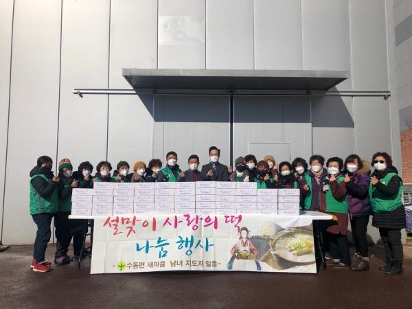 [한국Q뉴스] 남양주시 수동면 새마을남녀지도자협의회가 지난 4일 설맞이 떡 나누기 행사를 개최하고 새마을부녀회원들이 직접 준비한 설맞이 떡 50상자를 관내 어려운 이웃과 독거노인에게 전달했다.