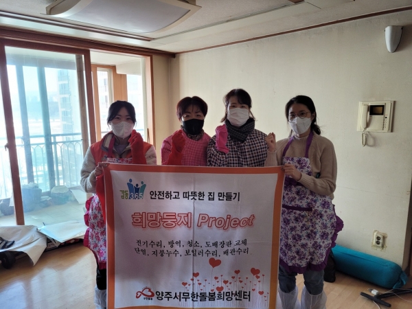 이날은 홍미영 회천2동장, 오희교 회천범양아파트 통장, 무한돌봄희망센터 직원이 참여해 가운데 대상 가구 내 방치됐던 옷가지, 이불, 음식쓰레기 등 생활쓰레기를 정리하는 등 주거환경을 개선했다.
