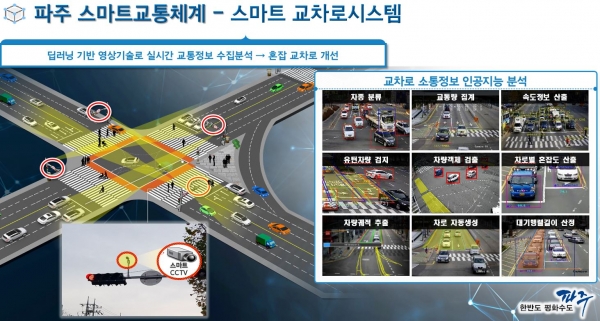 [한국Q뉴스] 파주시가 5일 와동교차로 등 28개소에 AI 영상분석기술을 기반으로 한 스마트교차로 구축을 완료하고 본격 운영한다.
