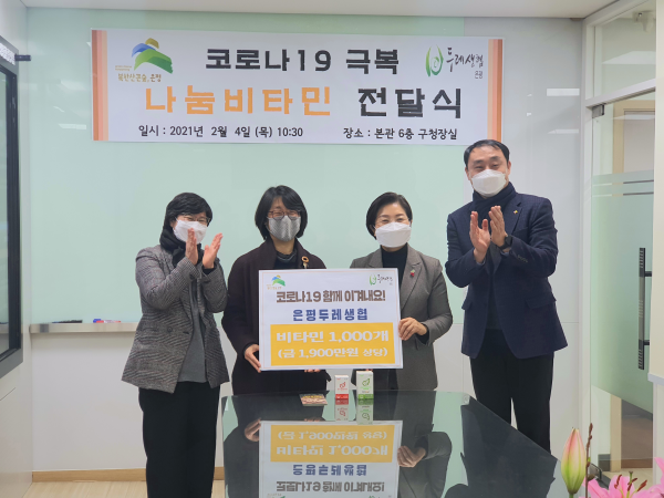 [한국Q뉴스] 지난 2월 4일 은평구와 은평두레생협은 코로나19 극복을 위한 나눔 비타민 전달식을 가졌다.