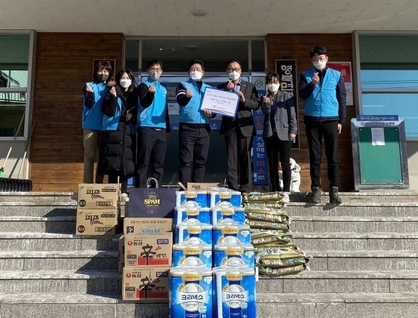 [한국Q뉴스] K-water 연천포천권지사 물사랑나눔단은 지난 4일 설 명절을 맞아 직원들의 정성을 모은 식료품 세트를 영북면행정복지센터에 기탁했다.
