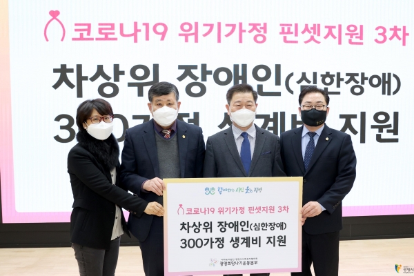 [한국Q뉴스] 광명시가 광명핀셋 3차 지원으로 의료비, 의료기기 구입에 경제적 부담이 큰 차상위장애인 300가구에 30만원을 전달한다고 8일 밝혔다.