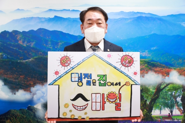 [한국Q뉴스] 성주군의회 김경호 의장은 지난 5일 칠곡군의회 장세학 의장의 지명을 받아 설 연휴 동안 고향방문과 모임 자제를 촉구하는 ‘명절은 집에서 스마일’ 챌린지에 동참했다.