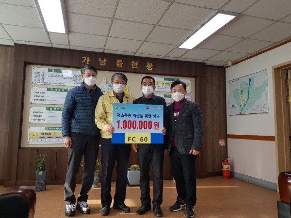강대준 가남읍장은 “인생은 60부터라는 말처럼 누구보다 열정적으로 지역사회를 위해 마음을 모아주신 가남 FC60 회원 분들께 감사드린다”며 “온기 가득한 나눔이 이어지고 있는 가남읍 곳곳에 소외된 이웃 없이 행복의 웃음이 피어나길 바란다”고 전했다.