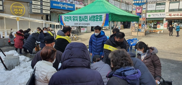 [한국Q뉴스] 강천역 유치 추진위원회는 2월 5일 여주 5일장에서 강천면 유치를 위한 범시민 서명운동을 전개했다.