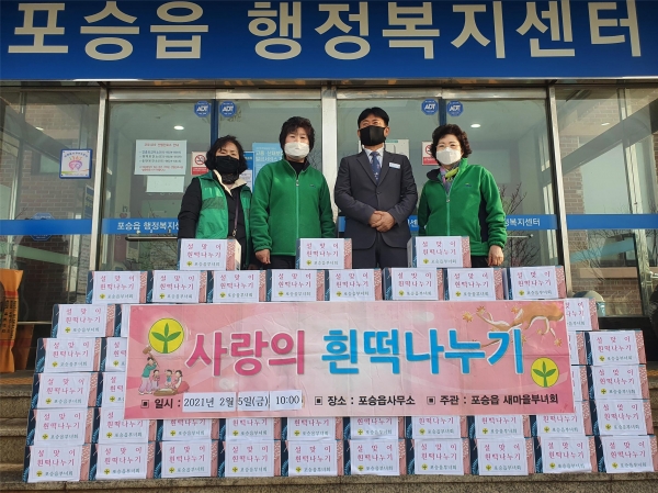 [한국Q뉴스] 평택시 포승읍 새마을부녀회는 지난 5일 포승읍행정복지센터에서 설맞이 흰떡 나눔 행사를 진행했다.