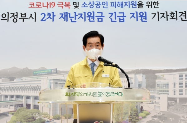 코로나19의 확산으로 지난해부터 24개 업종 약 1만2천674개의 업소가 영업제한·집합금지 등의 행정명령을 받아 영업에 어려움을 겪고 있으며 영업제한 업소는 30만원, 집합제한 업소는 50만원의 재난지원금을 의정부 지역화폐로 지급한다.