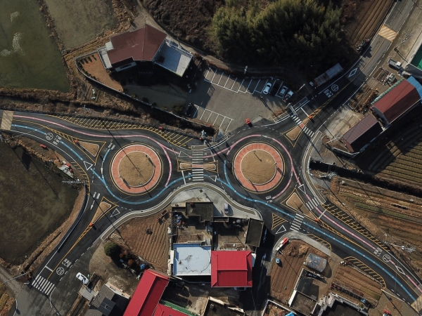 회전교차로는 교차로 중앙에 설치된 교통섬을 중심으로 회전해 통행하는 방식으로 차량 소통이 원활해지고 교차로 진입을 위해 차량들이 저속 운행을 해 대형사고가 발생할 확률이 낮은 장점이 있다.