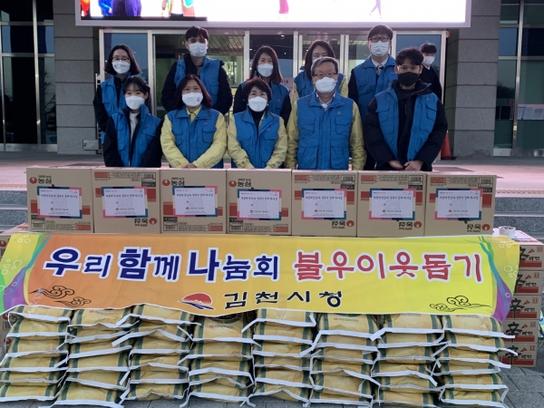 지난 1일에는 김천시청 현관 앞에서 설맞이 사랑의 위문품 전달행사를 가졌다.