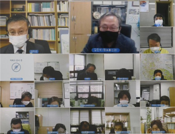 시와 읍·면·동 80여명의 전 간부진이 참여하는 화상회의는 이번이 처음으로 비대면 업무시스템을 고도화해 포스트코로나 시대에 대비한 스마트 행정환경을 구축하겠다는 의지가 담겼다.