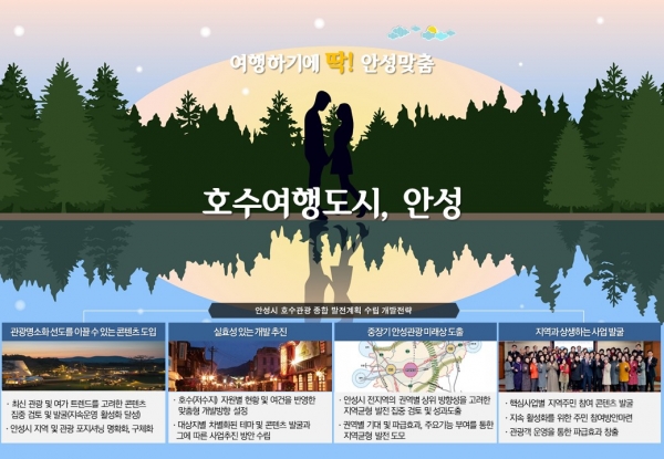 설명회에서 용역사인 ㈜플랜이슈는 기존 한국농어촌공사 등에서 관리하는 안성의 호수 자원에 대한 현황 분석 및 자원성 평가에서 시작해, 미래의 다양한 관광 수요에 대비할 수 있는 방안을 마련할 용역 절차에 대해 설명했다.