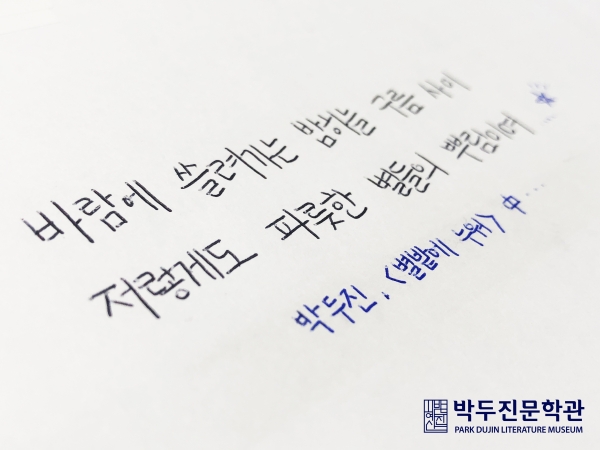 문학관 관계자는 “디지털화된 문화 속에서 아날로그의 정서를 느낄 수 있는 필사를 통해 몸과 마음을 치유하고 안성의 자연을 노래했던 박두진 시인의 숨결을 따라 쉬는 시간을 가지시길 바란다”고 밝혔다.