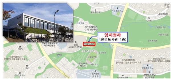 [한국Q뉴스] 파주시 운정3동 행정복지센터가 오는 2월 22일부터 한울도서관 건물 지상 1층의 임시청사로 이전해 업무를 시작한다.