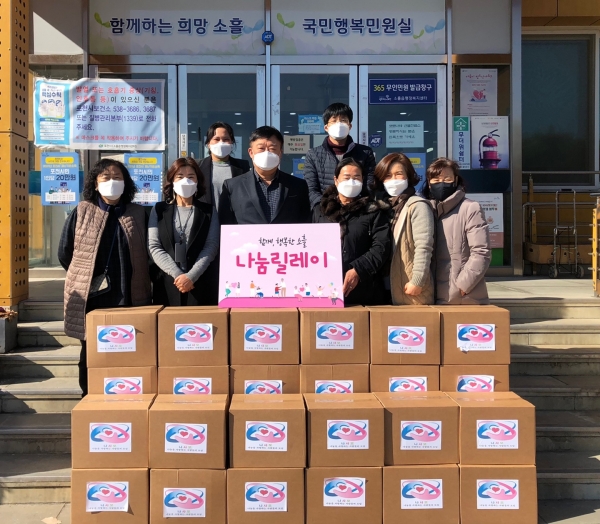 최기진 소흘읍장과 손영길 군내면장은 “코로나19로 인한 어려움 속에서도 소흘읍 저소득층을 위해 아낌없는 나눔을 실천해 주셔서 감사드리며 후원해 주신 분들의 소중한 정성이 도움이 필요한 이웃에게 잘 전달될 수 있도록 최선을 다하겠다”고 말했다.