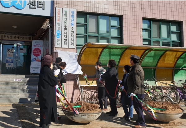 이날 현판식은 코로나19 방역수칙을 준수하며 도의원, 시의원, 주민자치위원 등이 참석한 가운데 인사말, 현판식 제막, 기념촬영 등의 순서로 진행됐다.