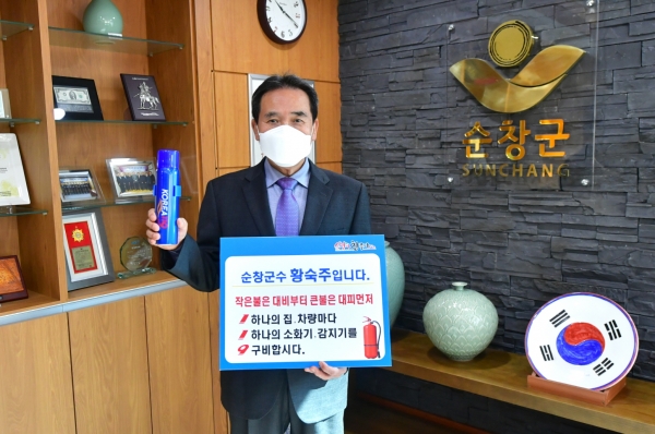 [한국Q뉴스] 황숙주 순창군수는 9일 주택용 소방시설인 소화기와 감지기의 중요성을 알리는 ‘119 릴레이 챌린지’에 동참했다.