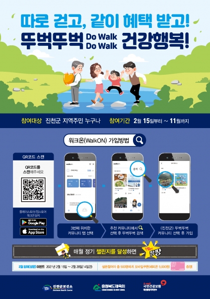 [한국Q뉴스] 진천군보건소가 오는 15일부터 모바일 걷기 앱 ‘뚜벅뚜벅’의 운영을 재개한다.