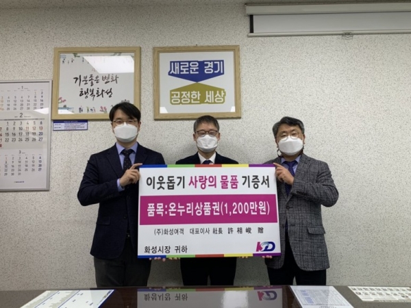 10일 ㈜화성여객은 코로나19 장기화로 어려움을 겪고 있는 이웃을 위해 온누리상품권 1만원권 총 1천2백 매를 화성시에 전달했다.