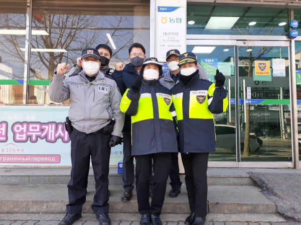 [한국Q뉴스] 대덕면 자율방범대와 어머니자율방범대는 설 명절을 맞아 지난 9일부터 10일까지 이틀간 대덕농협 본소와 대덕농협 내리지점에서 금융기관 범죄 예방을 위한 안전 지원 근무를 펼쳤다.