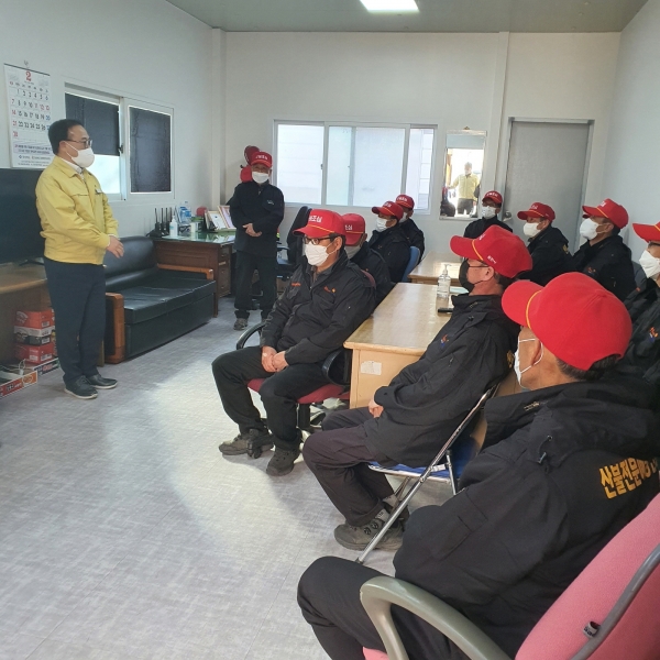 김천시 산불방지대책본부의 본부장인 이창재 부시장은 봄철 산불방지대책의 원활한 추진을 위해 전반적인 준비태세를 점검하고 산불예방 및 진화업무의 주축이 되는 산불전문예방진화대를 방문해 대원들과 소통하며 대화의 시간을 가졌다.