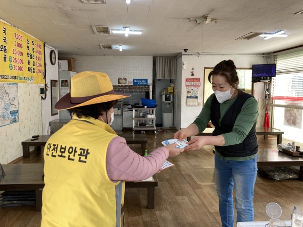 안전보안관들은 산막이 시장을 중심으로 겨울철 화재 행동요령과 전열기기 점검 체크리스트 리플릿, 손소독용 물티슈를 나눠주며 각종 안전수칙을 적극 홍보했다.