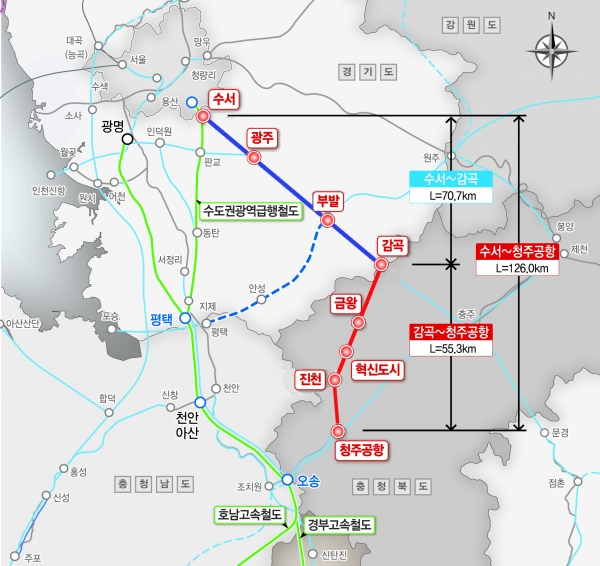 이 노선은 국가 최상위 계획인 제5차 국토종합계획에 반영됐으며 감곡~충북혁신도시~청주국제공항까지 총 55.3km를 연결하는 사업으로 서울부터 청주국제공항까지 환승 없이 52분 만에 운행이 가능하다.
