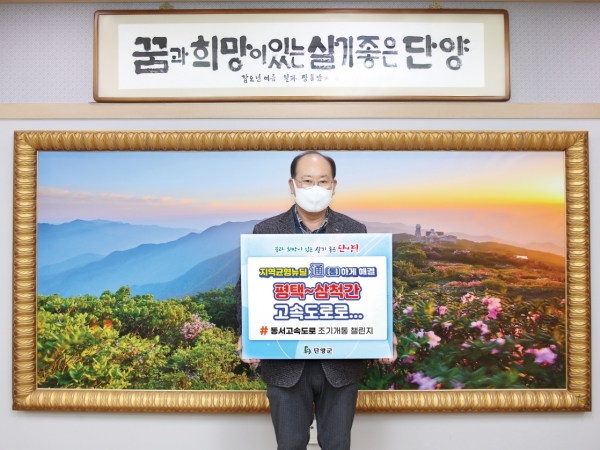 [한국Q뉴스] 류한우 단양군수가 지난 16일 국가균형발전의 염원을 담아 ‘동서고속도로 조기 개통’ 챌린지에 동참하며 전 국민적 공감대 형성 필요성을 강조했다.