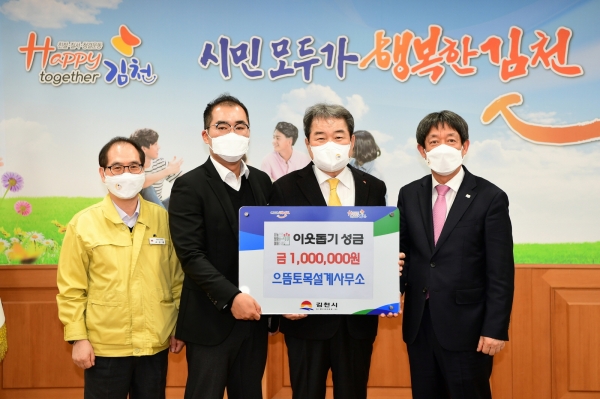 또한, 으뜸토목설계사무소에서도 김천시를 방문해 성금 100만원을 전달했다.