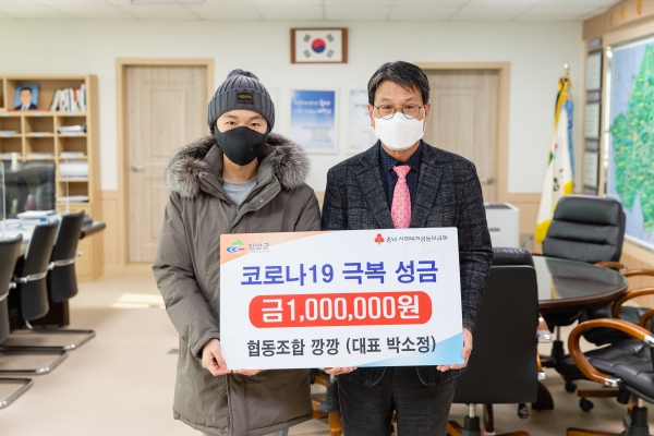 청양군 신활력플러스사업의 액션그룹 중 하나인 협동조합 깡깡에서는 16일 코로나19 확산 방지 및 극복을 위해 써달라며 청양군에 성금 100만원을 기탁했다.