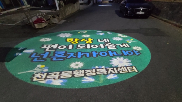 로고젝터를 활용한 안심귀갓길 조성사업은 지난해 주민참여 예산 제도를 통해 시작된 사업으로 주민들의 큰 호응을 얻은 바 있어 올해도 주민참여 예산 사업으로 추진됐다.