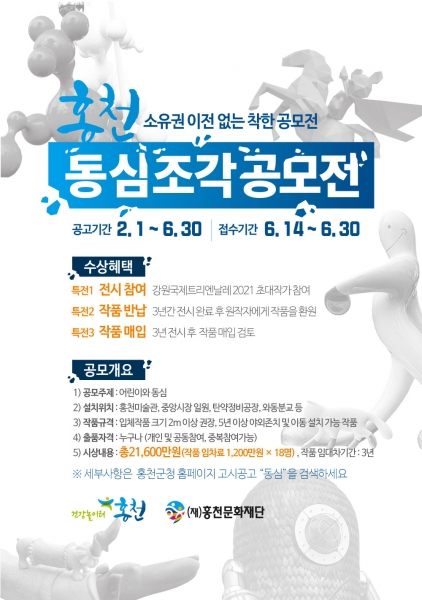 [한국Q뉴스] 홍천군이 소유권 이전 없는 착한 동심조각 공모전을 진행한다.