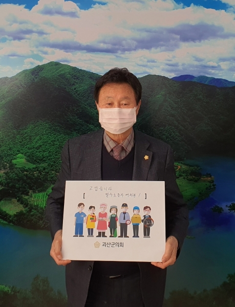 [한국Q뉴스] 신동운 괴산군의회 의장이 22일 ‘고맙습니다 필수노동자’ 캠페인에 동참했다.