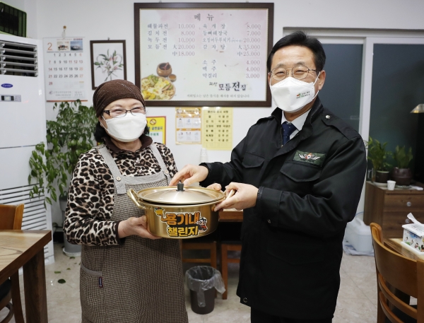 지난 22일 이차영 괴산군수는 지역 식당에서 냄비를 지참해 음식을 포장하고 점주의 애로사항을 수렴하는 시간을 가지고 용기내 챌린지의 첫 시작을 알렸다.