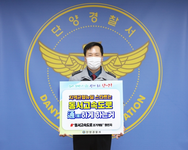 캠페인을 통해 이준배 단양경찰서장은 “이번 동서고속도로 조기개통 챌린지의 동참을 통해 육·해상 교통인프라 연계에 대한 국민적 관심을 높이고 국가균형발전에도 이바지할 수 있길 기대한다”고 전했으며 김혜숙 회장은 “국민 모두가 염원하는 동서고속도로 조기 개통에 한 발짝 다가가기를 바라는 간절한 마음으로 이번 챌린지에 동참하게 됐다”고 말했다.