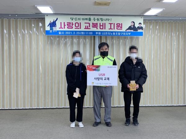 [한국Q뉴스] LG노동조합 구미지부는 23일 북삼 지역 저소득층 가정의 초·중 졸업생 10명에게 교복비 300만원을 지원했다.