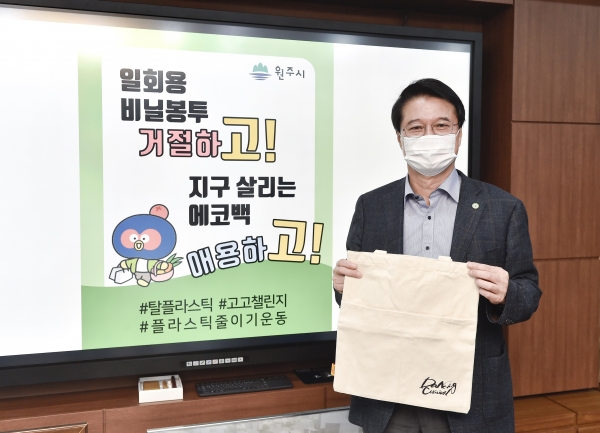 [한국Q뉴스] 원창묵 원주시장은 23일 환경부의 탈 플라스틱 실천 운동인 ‘고고챌린지’에 동참했다.
