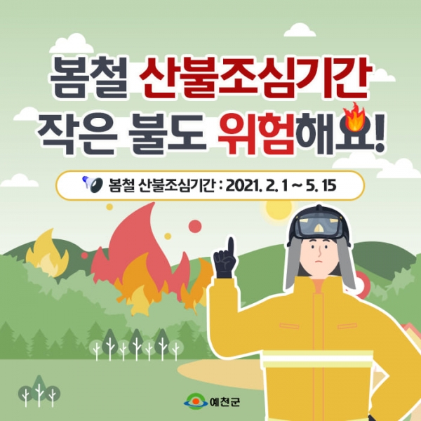 예천군 관계자는 “건조한 날씨가 잦아지고 산에 마른 낙엽이 쌓이면 잠깐의 방심으로도 작은 불씨가 산불로 번질 수 있는 만큼 군민들의 적극적인 협조가 필요하다”며 “산불을 발견했을 경우 군청 산림녹지과나 읍·면행정복지센터 또는 119로 즉시 신고하시길 당부 드린다”고 말했다.