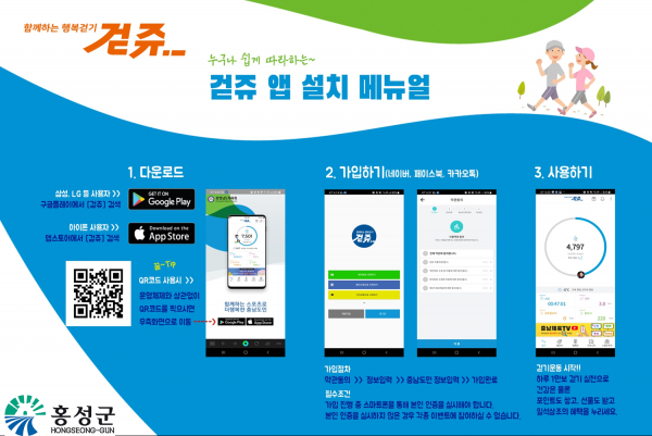 이와 함께 홍성군민 이용자의 편의를 위해 ‘걷쥬’앱 내에 개설된 홍성군 공식 커뮤니티를 통해 이용자의 다양한 의견을 수렴해 군민 건강증진을 위한 소통창구로 활용할 계획이라고 전했다.