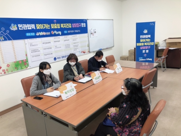 이번 상담은 아산시청 행복키움지원팀, 나눔과 기쁨 대표, 통합사례 관리사, 의료급여 관리사가 참여해 저소득층 대상자 5명에게 복지 의료 일자리 기타 상담을 제공했다.