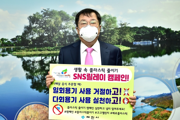 [한국Q뉴스] 이상천 제천시장은 지난 25일 탈 플라스틱 공감대 형성 및 확산을 위한 생활 속 플라스틱 줄이기 SNS 캠페인 ‘고고 챌린지’에 동참했다.