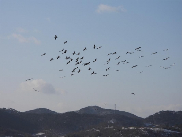 [한국Q뉴스] 예산군 황새공원 야생복귀연구팀이 지난해 11월부터 올해 2월까지 겨울철 월동 황새를 조사한 결과 100∼150여 마리가 국내에 도래했으며 2019년에 비해 1.6배 이상 개체수가 증가한 것으로 파악됐다.