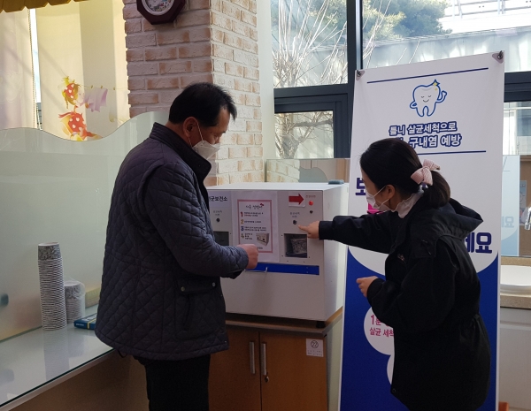 [한국Q뉴스] 옥천군 보건소는 지난해부터 의치를 사용하는 지역 주민의 구강건강을 위해 보건소 1층 구강보건센터에 고정형 틀니살균세척기를 설치 운영하고 있다.